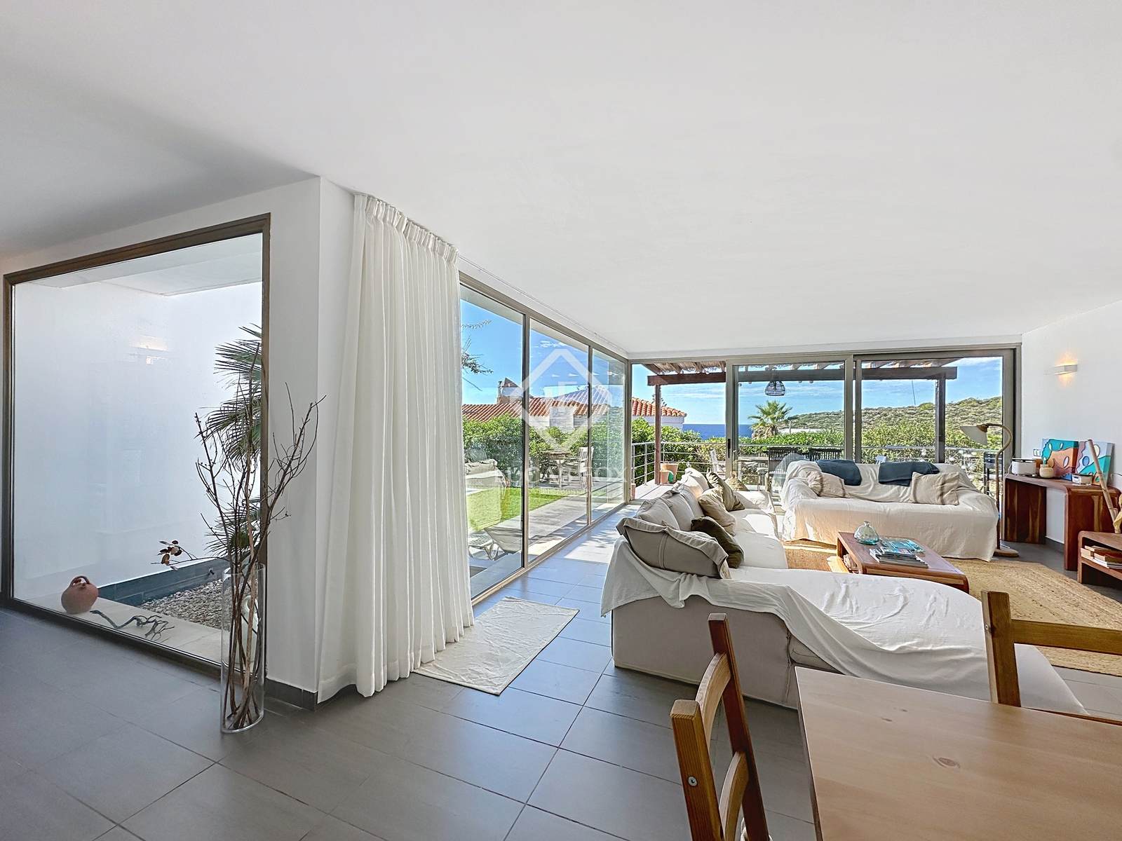 Lucas Fox presenta esta magnífica villa contemporánea en segunda línea de mar, situada en una posición elevada sobre la costa sur de Menorca, con unas vistas espectaculares al Mediterráneo y vistas lejanas a la isla de Mallorca.