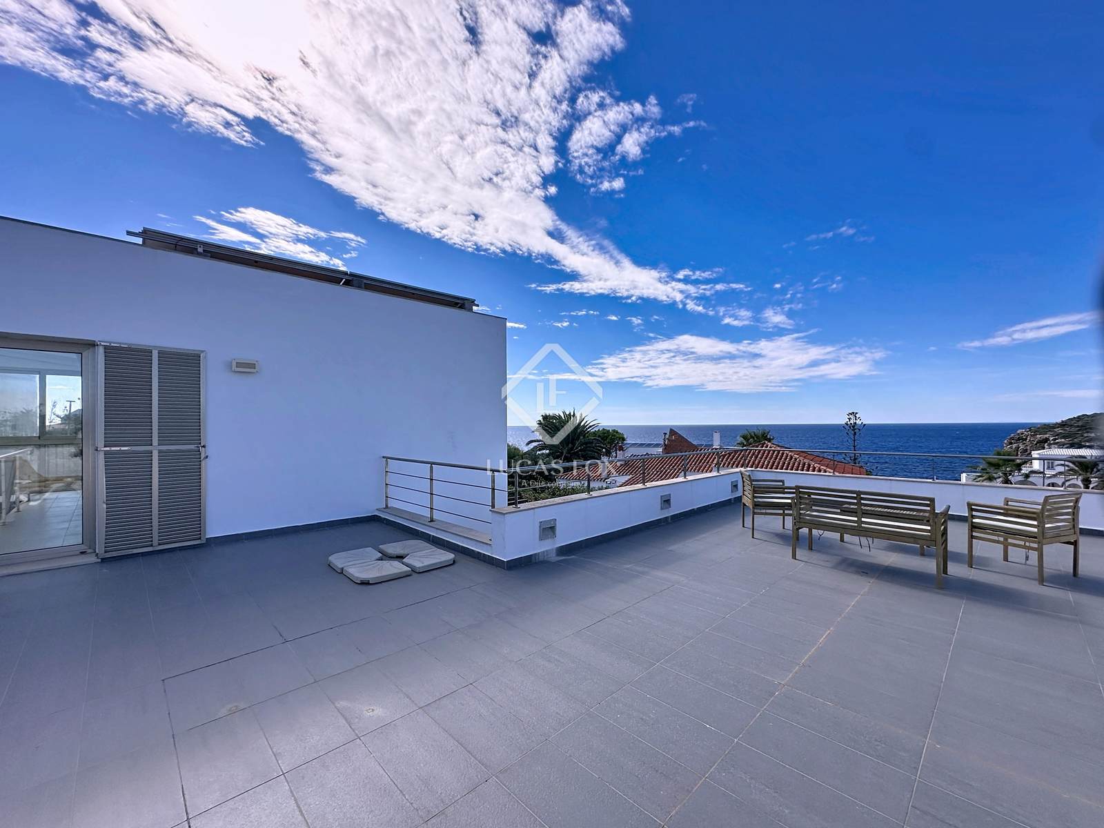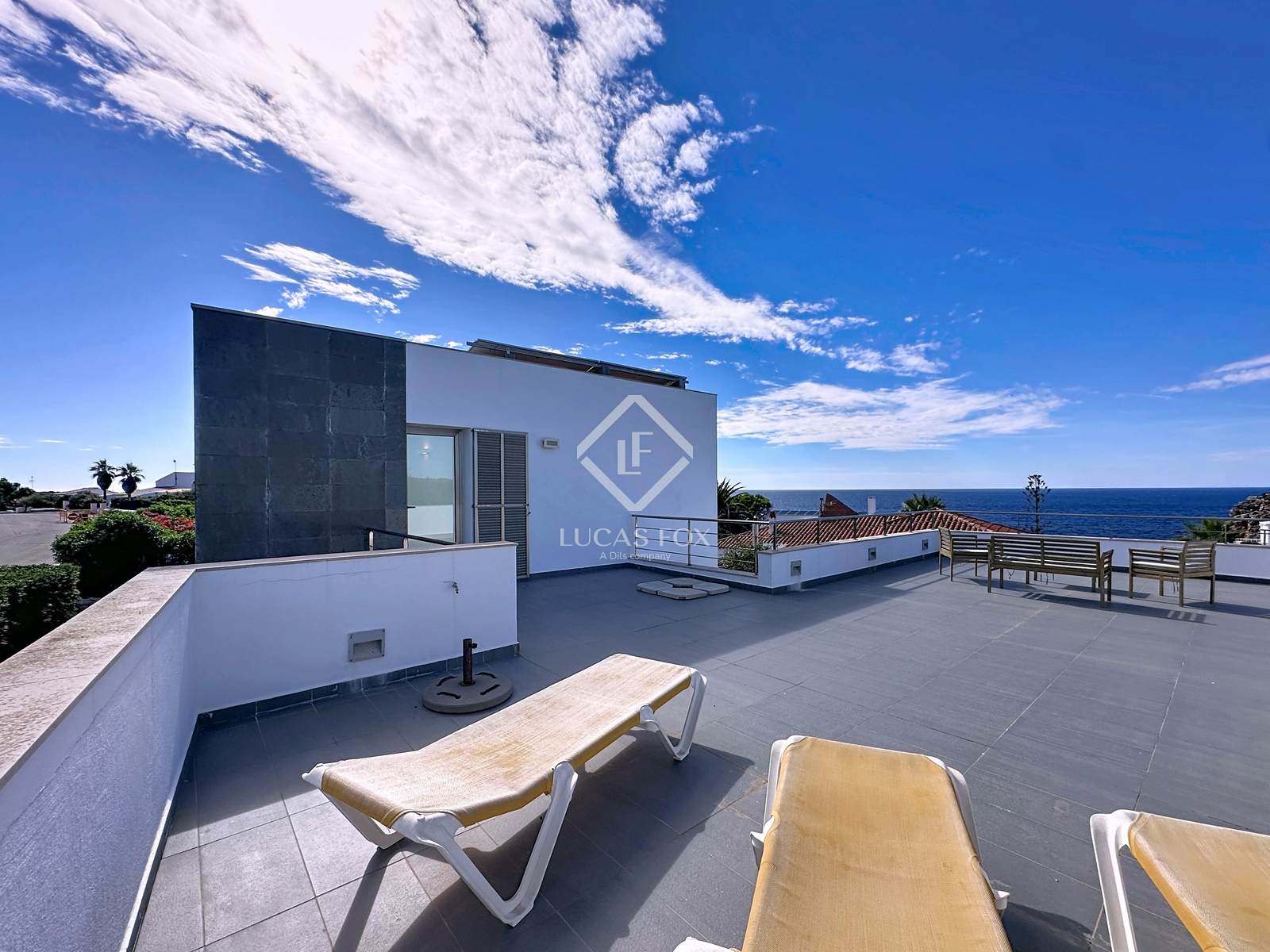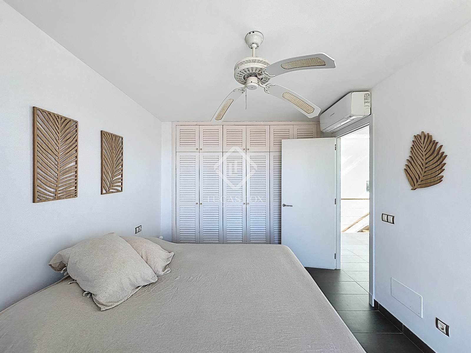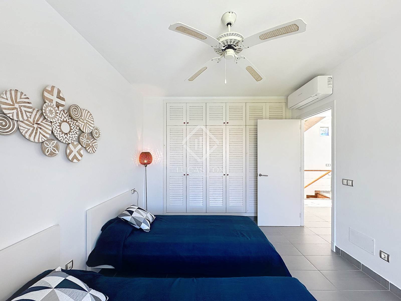 El interior destaca por su luminosidad, con grandes ventanales de suelo a techo que abarcan varias fachadas y que permiten disfrutar de las vistas al mar desde casi todas las estancias. Dispone de cuatro amplios dormitorios y tres baños, ideal para alojar cómodamente a dos familias.