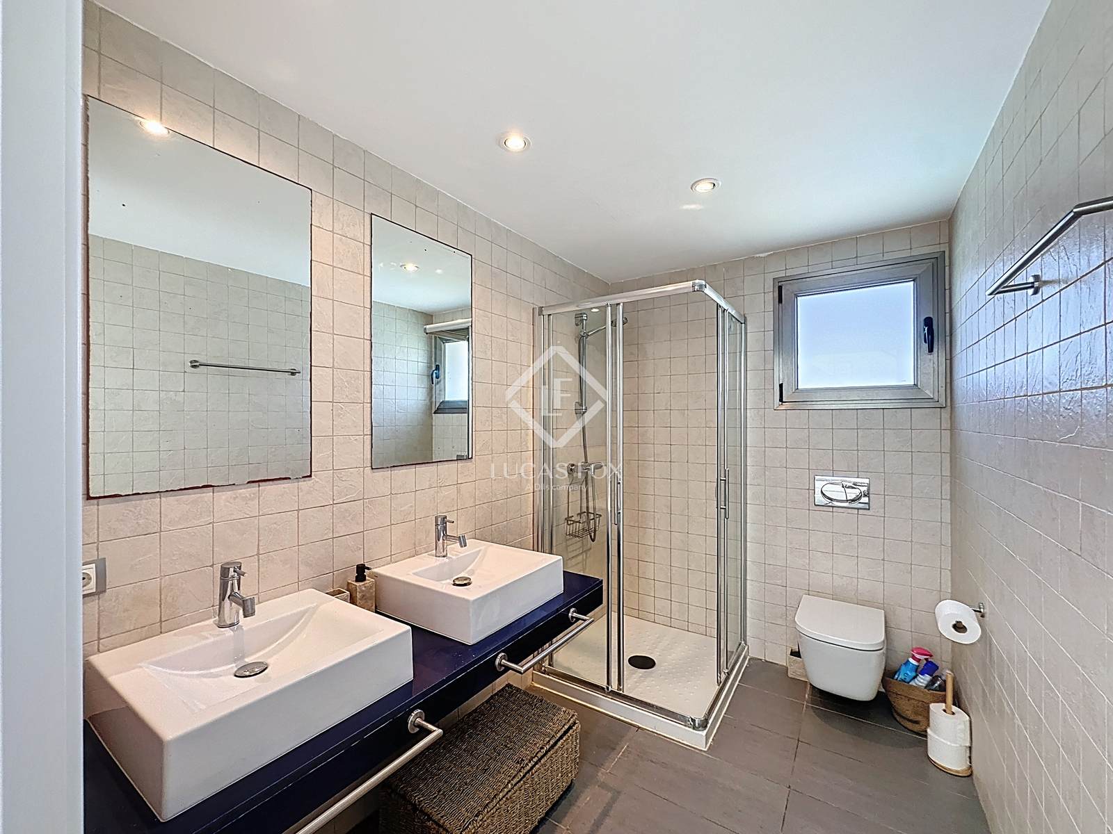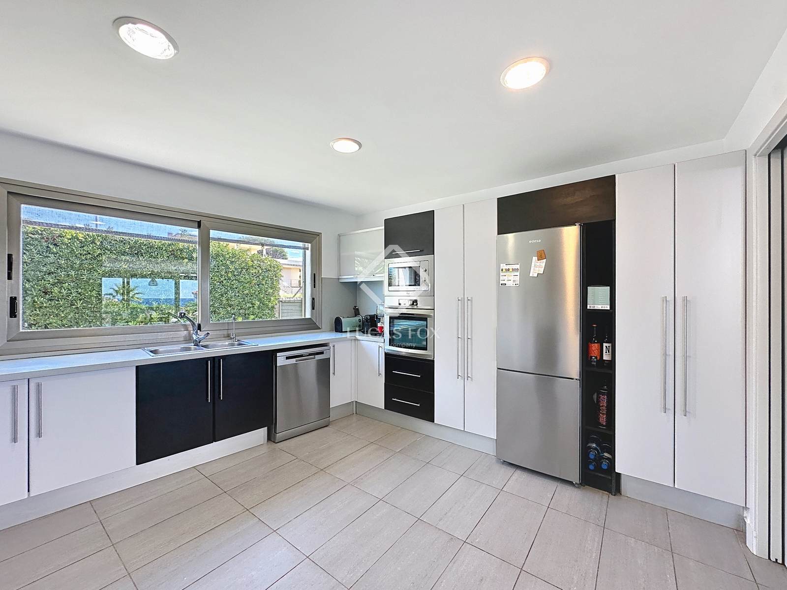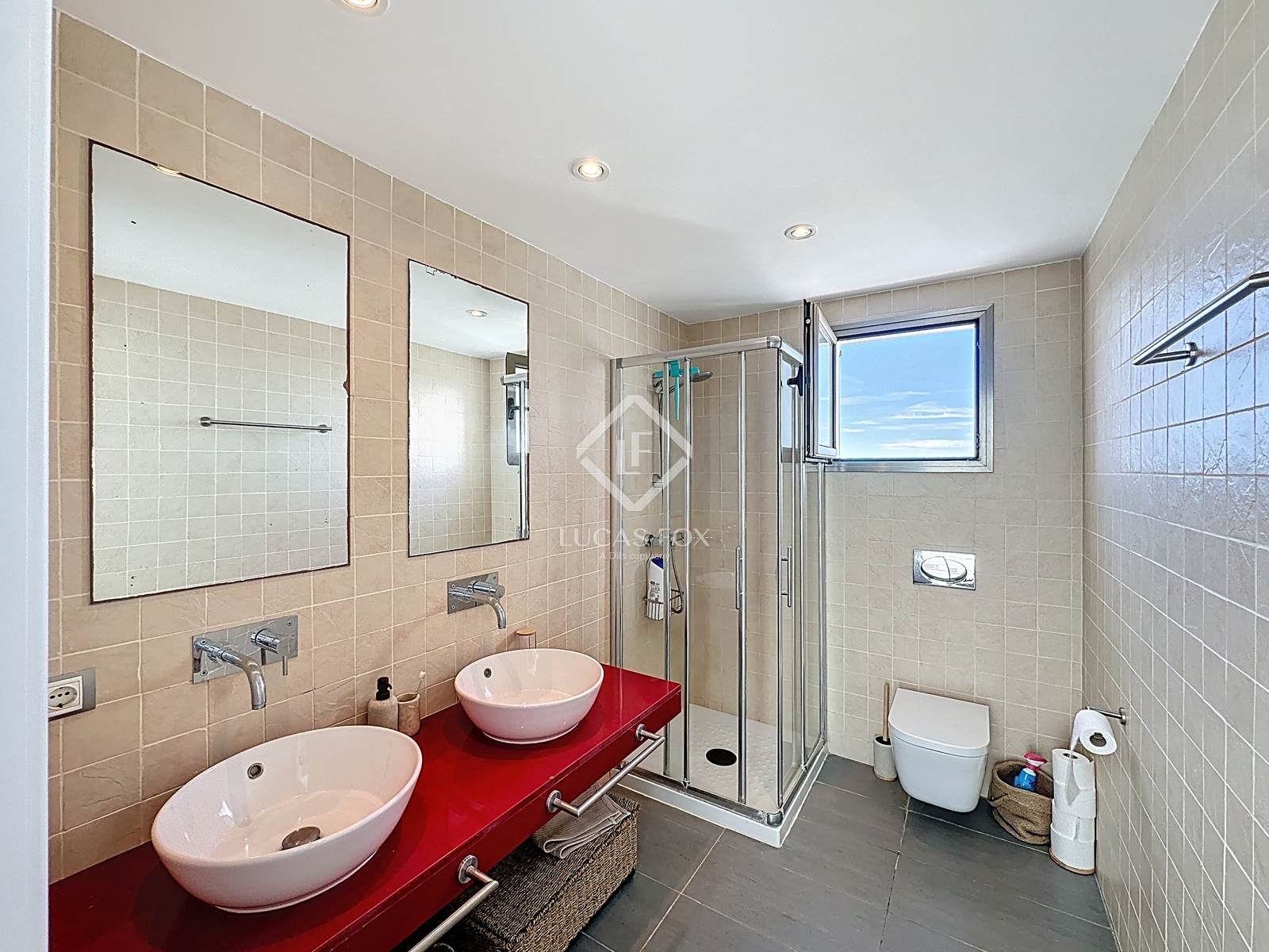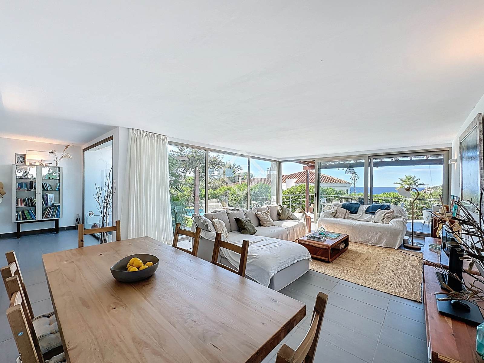 El interior destaca por su luminosidad, con grandes ventanales de suelo a techo que abarcan varias fachadas y que permiten disfrutar de las vistas al mar desde casi todas las estancias. Dispone de cuatro amplios dormitorios y tres baños, ideal para alojar cómodamente a dos familias.