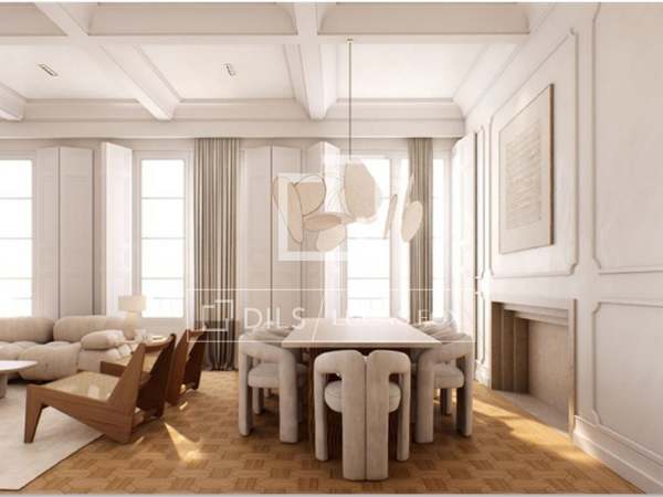 La vivienda de 298 m² se sitúa en la tercera planta de un edificio clásico y disfruta de techos altos que aportan amplitud. Además, goza de una luminosidad excepcional, gracias a su orientación sur y a sus cinco balcones que se abren a la calle principal.