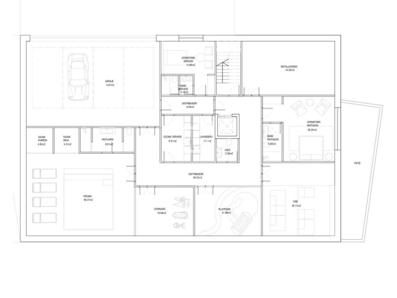 Esta distribución refuerza la jerarquía de espacios propia de una vivienda tipo palacio, combinando áreas representativas, privadas y de servicio con un alto nivel de confort y funcionalidad.