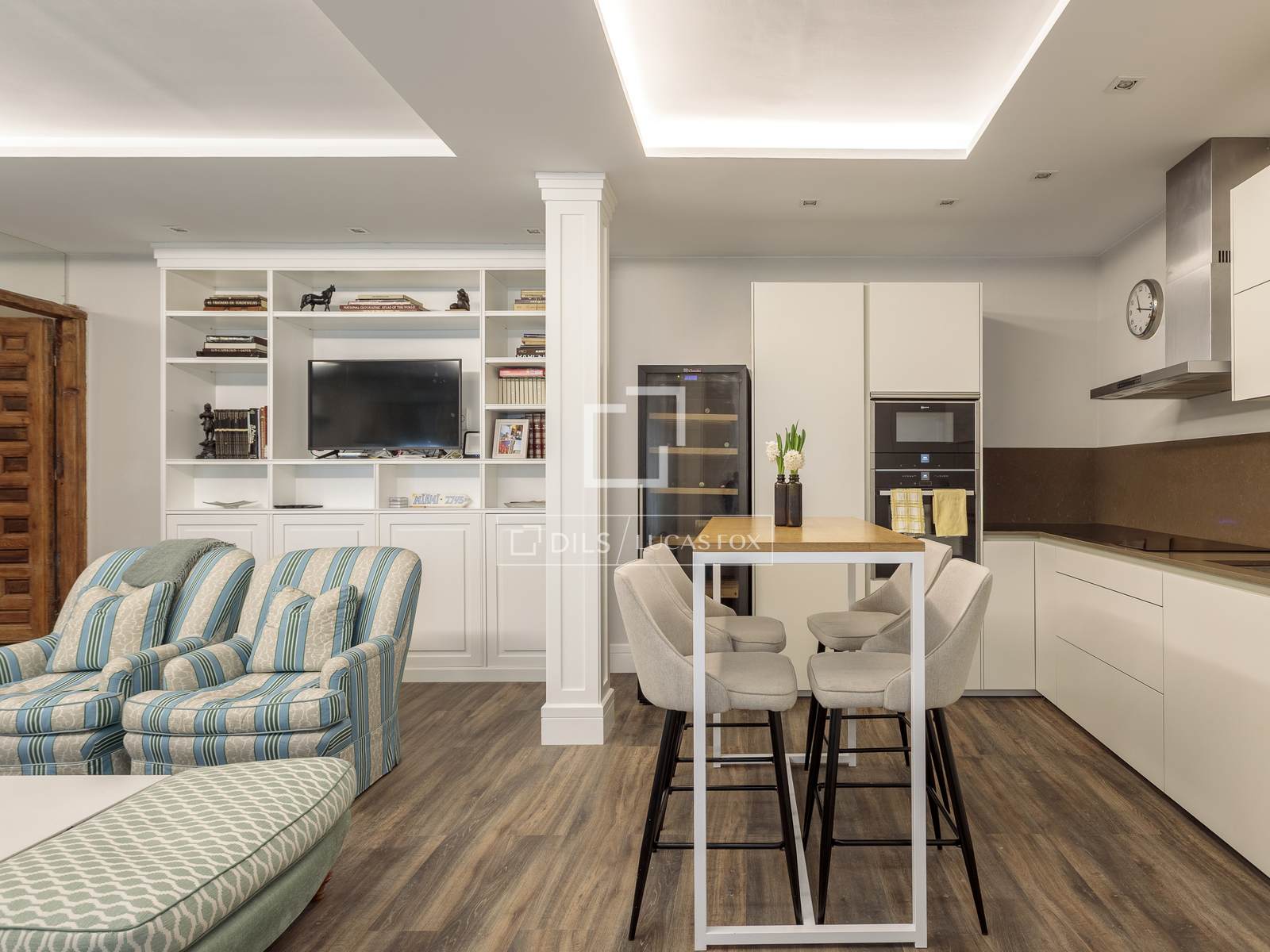 Elegante vivienda situada en el exclusivo barrio de Justicia, en pleno centro de Madrid, una de las zonas más demandadas por su estilo, oferta cultural y ambiente cosmopolita. La propiedad se encuentra en una finca con encanto, con elementos arquitectónicos clásicos combinados con una cuidada reforma de estilo moderno.