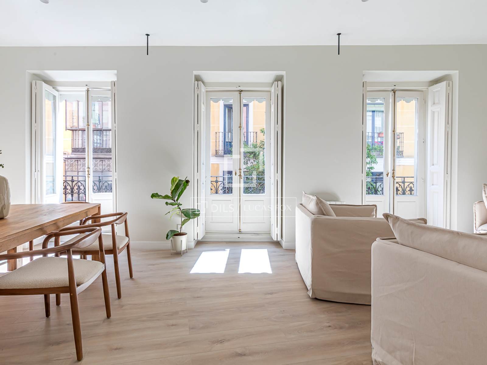 Piso reformado y a estrenar con 3 balcones a la calle en venta en una preciosa finca clásica en el barrio de Malasaña, Madrid.