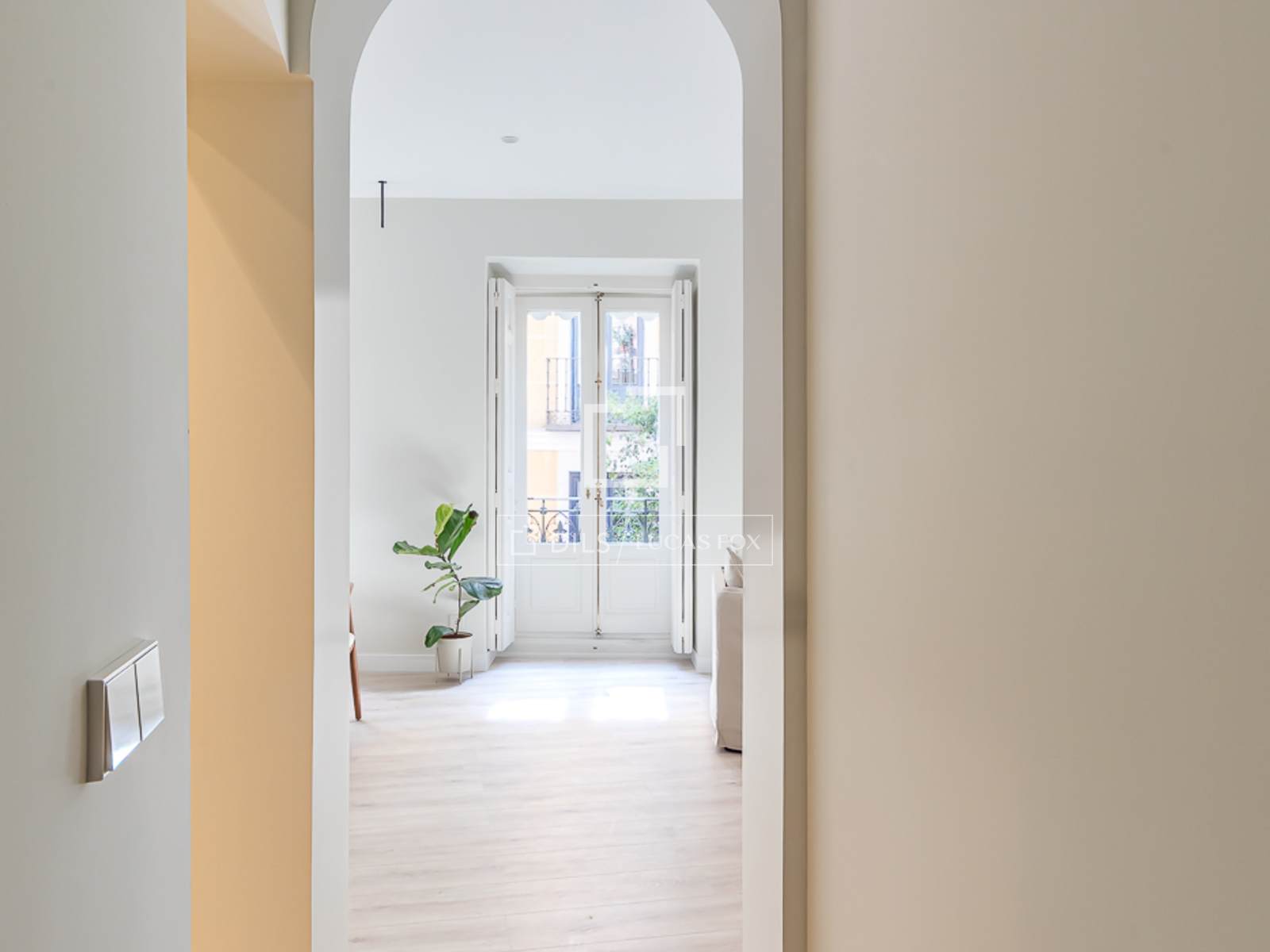 Lucas Fox presenta este luminoso y elegante piso reformado con encanto en el centro de Madrid. Esta vivienda exterior se sitúa una calle tranquila en pleno centro de Madrid, en la primera planta alta de un señorial edificio clásico de 1900. Conserva el carácter de la arquitectura histórica, pero incluye las comodidades de una reforma contemporánea de alta calidad.