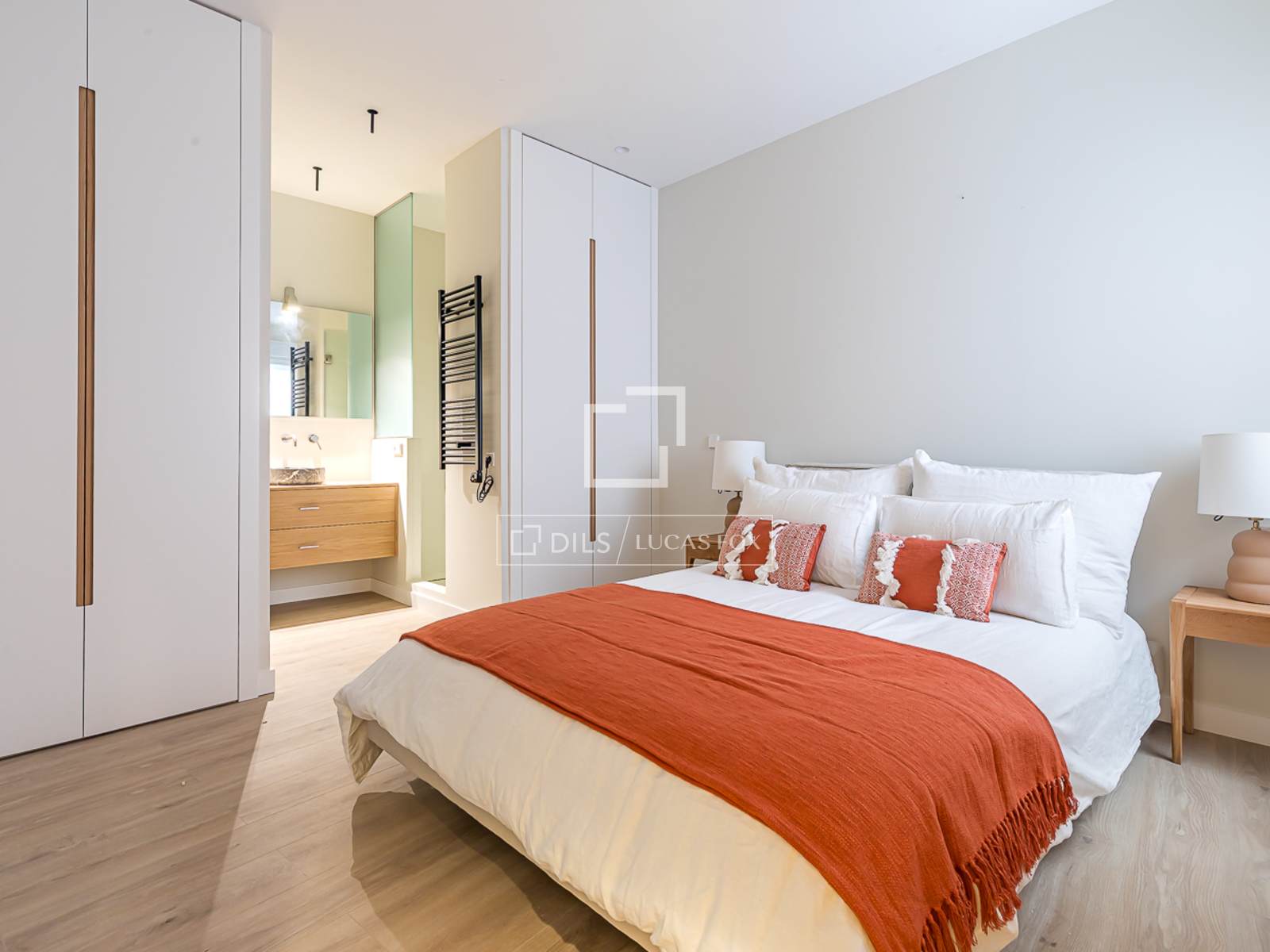 La vivienda se ha renovado completamente y se ha amueblado con gusto y materiales de primera. Dispone de un amplio salón-comedor con abundante luz natural, gracias a sus tres balcones exteriores. La cocina independiente viene totalmente equipada con un diseño funcional. Cuenta con dos dormitorios, ambos con baño privado. El dormitorio principal destaca por su generoso tamaño y sus armarios empotrados, que ofrecen gran capacidad de almacenamiento. Además, la vivienda dispone de un aseo de cortesía con ducha, ideal para visitas.