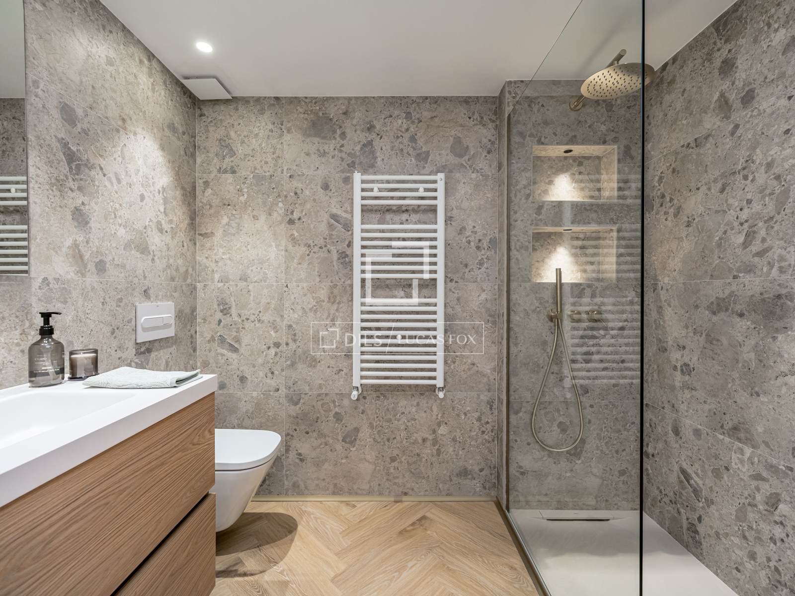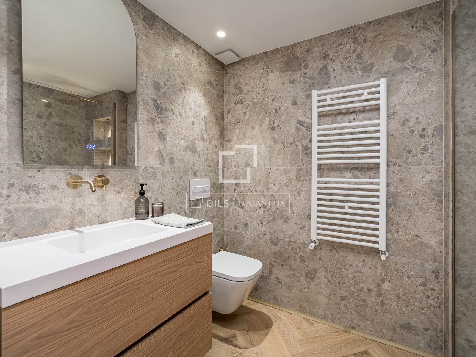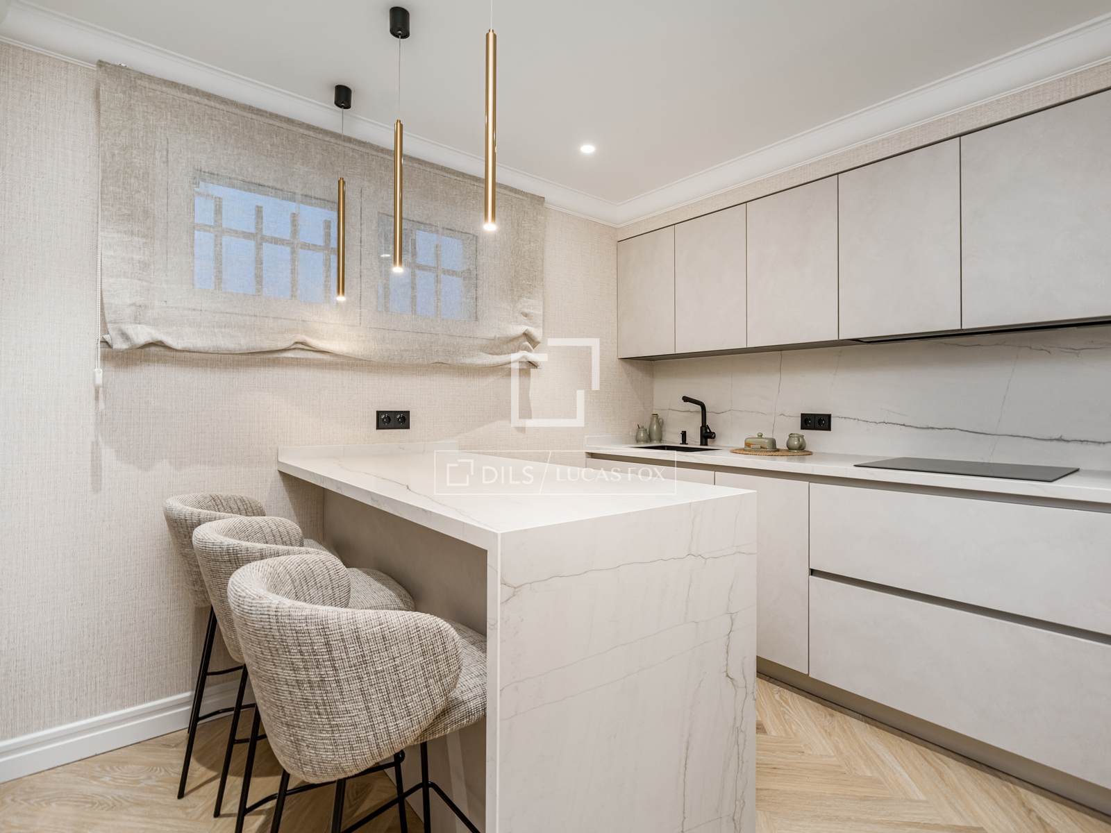 Dispone de 2 dormitorios y 3 baños, una distribución poco habitual que aporta un plus de comodidad y funcionalidad. La cocina, independiente y de diseño contemporáneo, está equipada con electrodomésticos de primeras marcas e incorpora una elegante península que combina estética y practicidad.