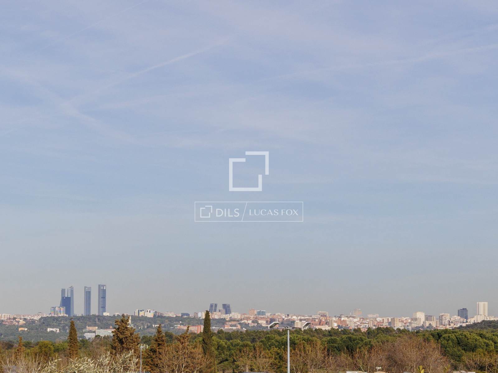 Adicionalmente debemos mencionar el balcón del despacho desde el que la vivienda nos regala unas espectaculares vistas al parque natural colindante y el skyline de Madrid.