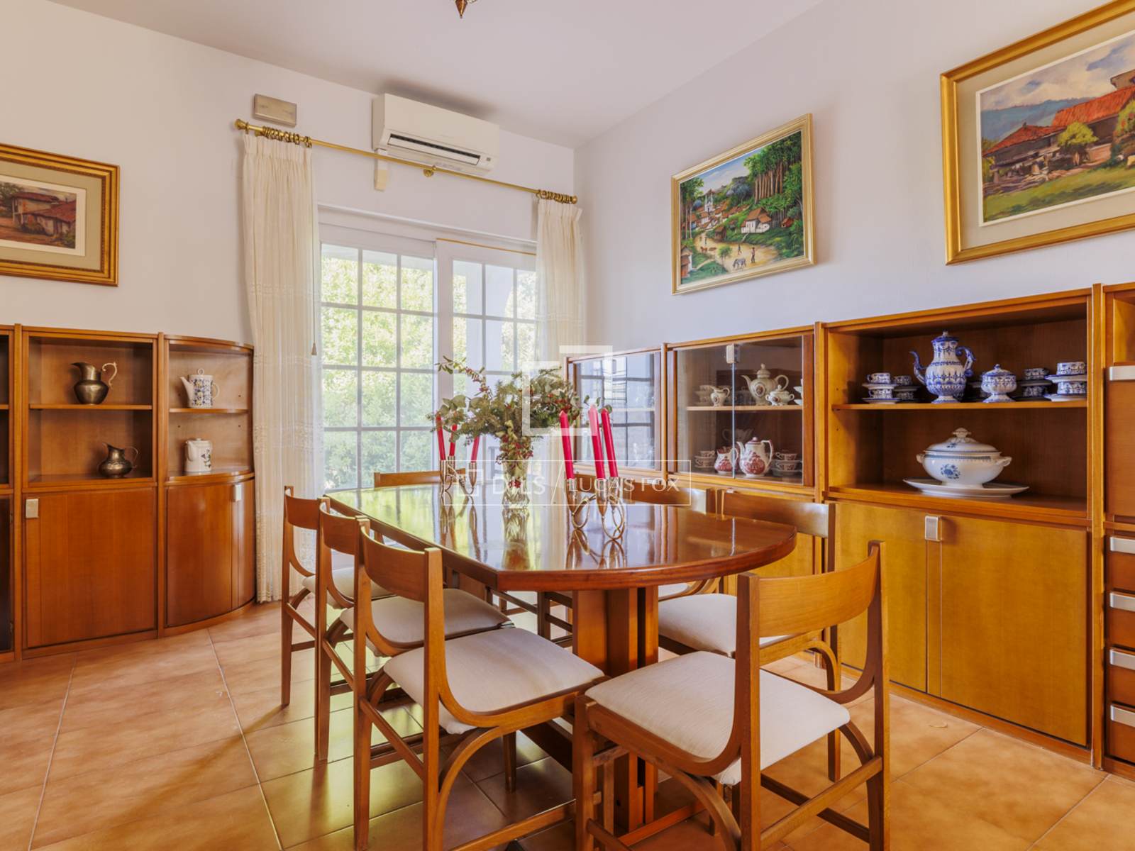Junto al salón daremos con el comedor, con capacidad de hasta diez comensales está iluminado tanto por los ventanales del salón como por la generosa salida al jardín principal a través de una escalinata amplia y cómoda cobijada por un porche sombreado ideal para los veranos.
