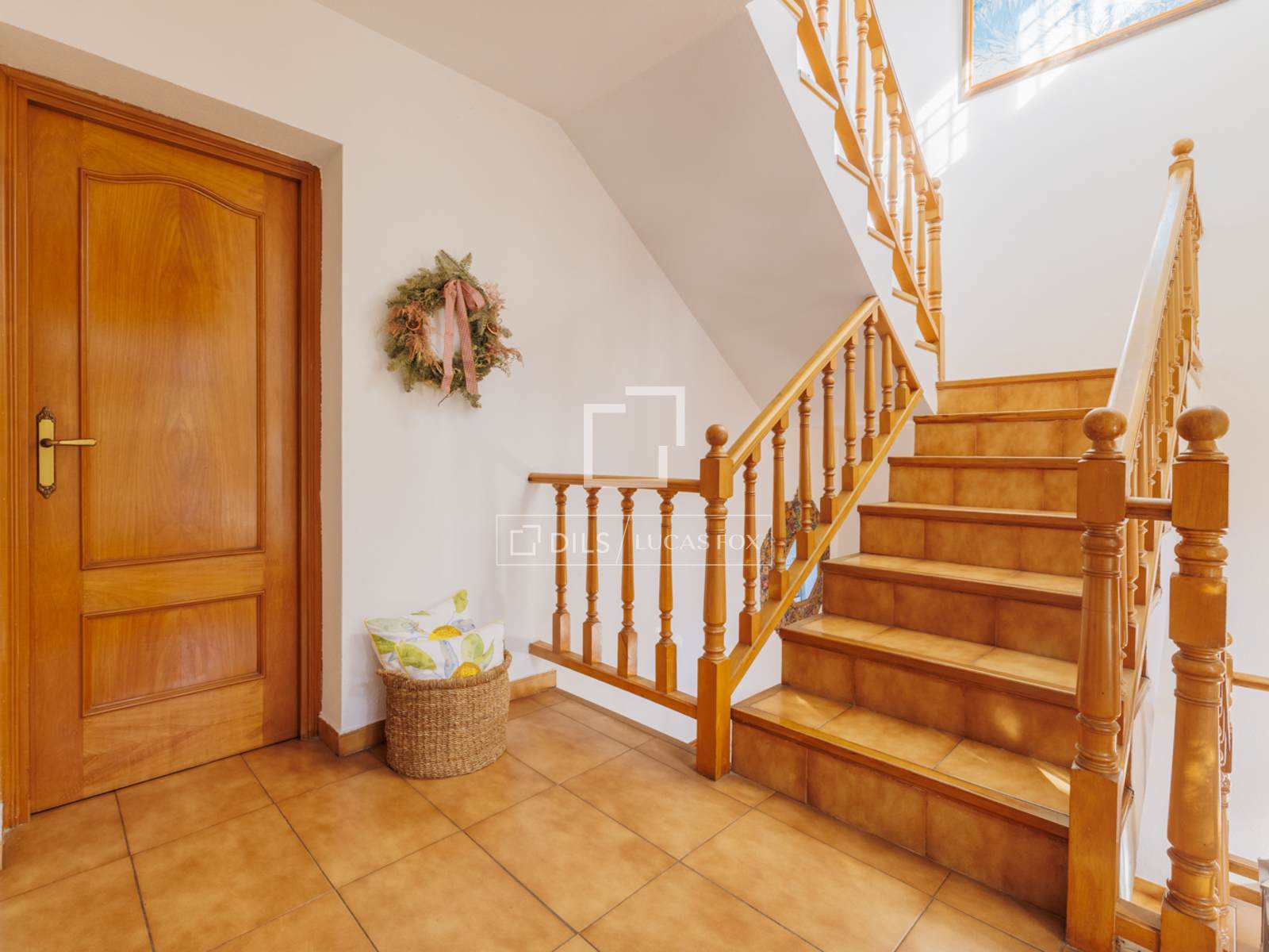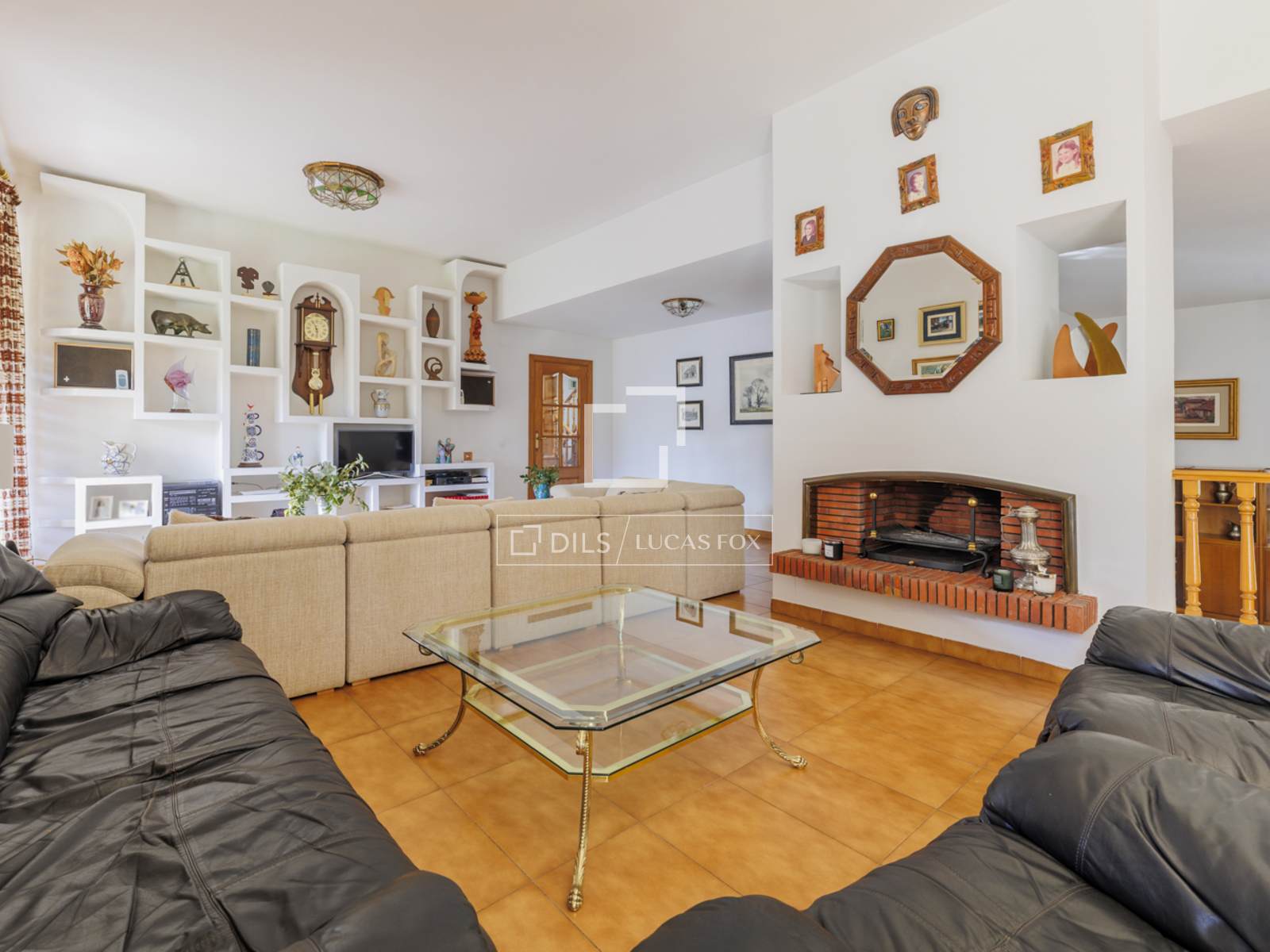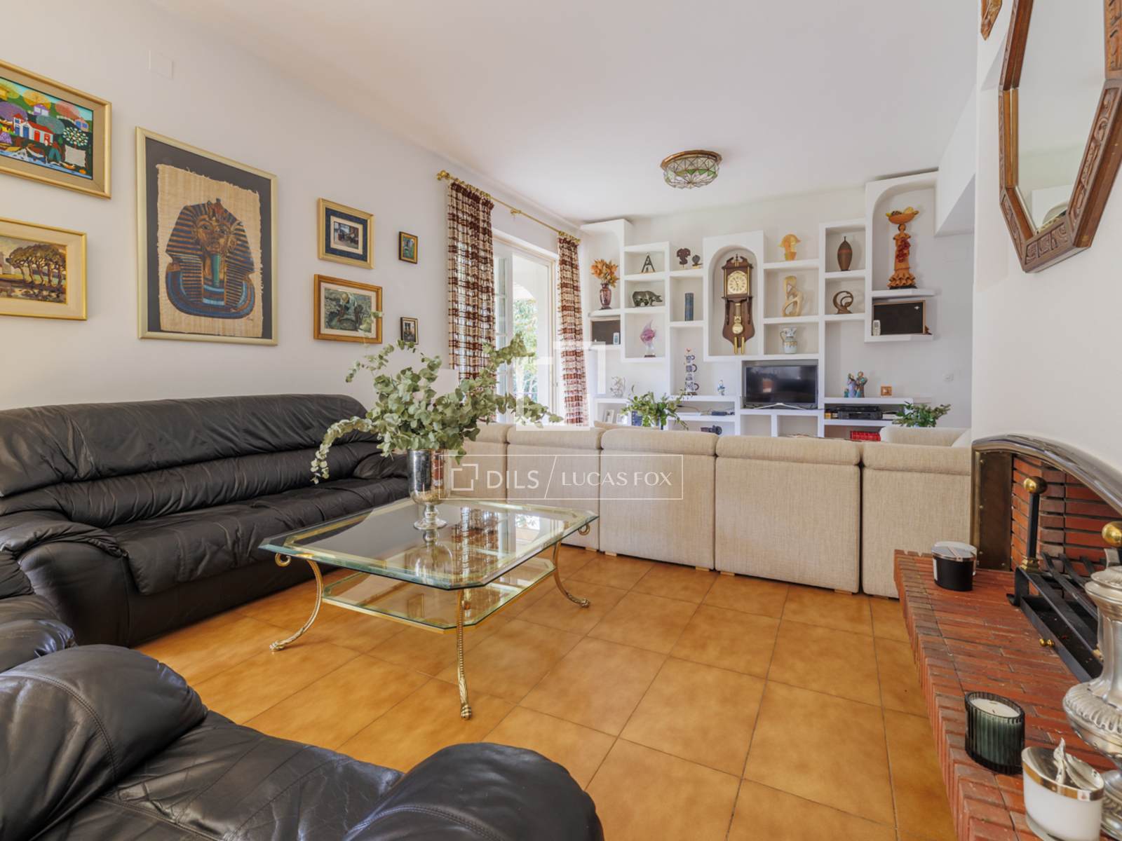 El amplio recibidor nos ofrece acceso a las diferentes áreas de la casa y, empezando por la derecha, daremos al salón principal. Un espacio con dos ambientes muy bien delimitados y ambos orientados al sur que dan acceso al porche antes mencionado. La chimenea, ubicada en la mitad de sendas salas aporta calidez hogareña a este espacio.