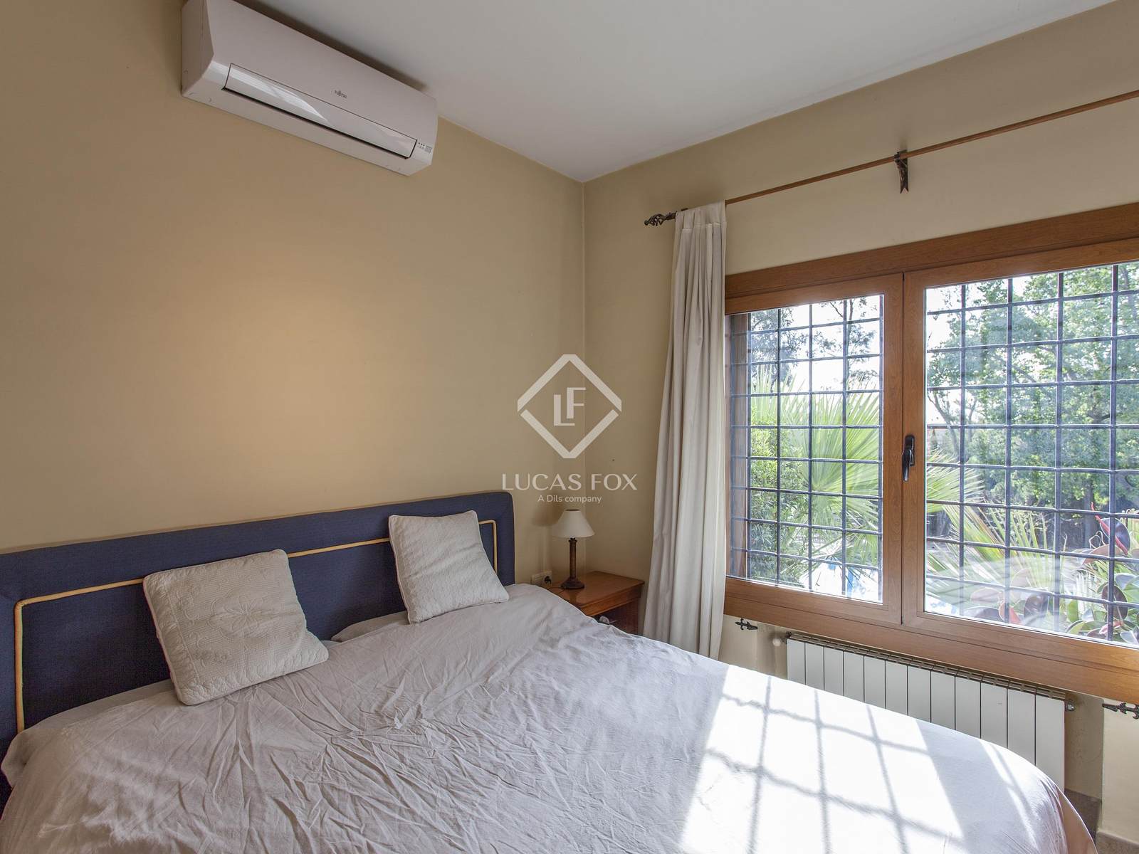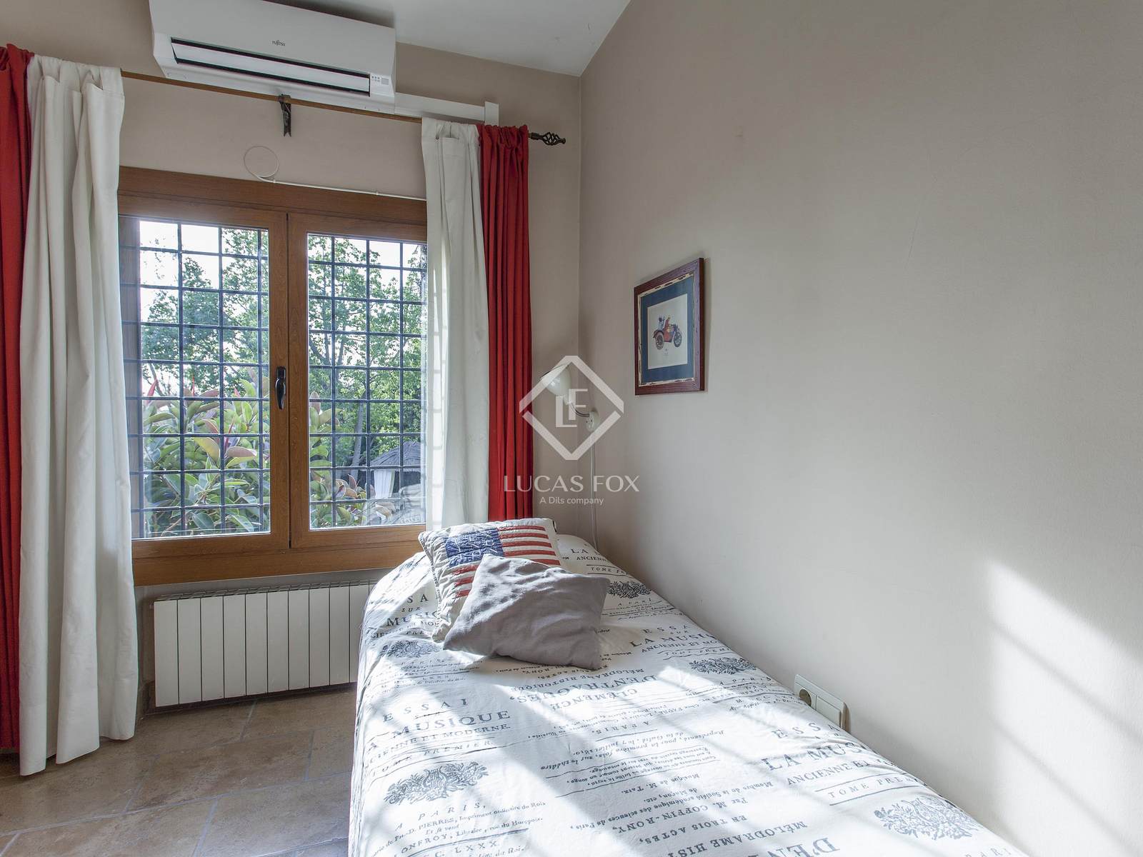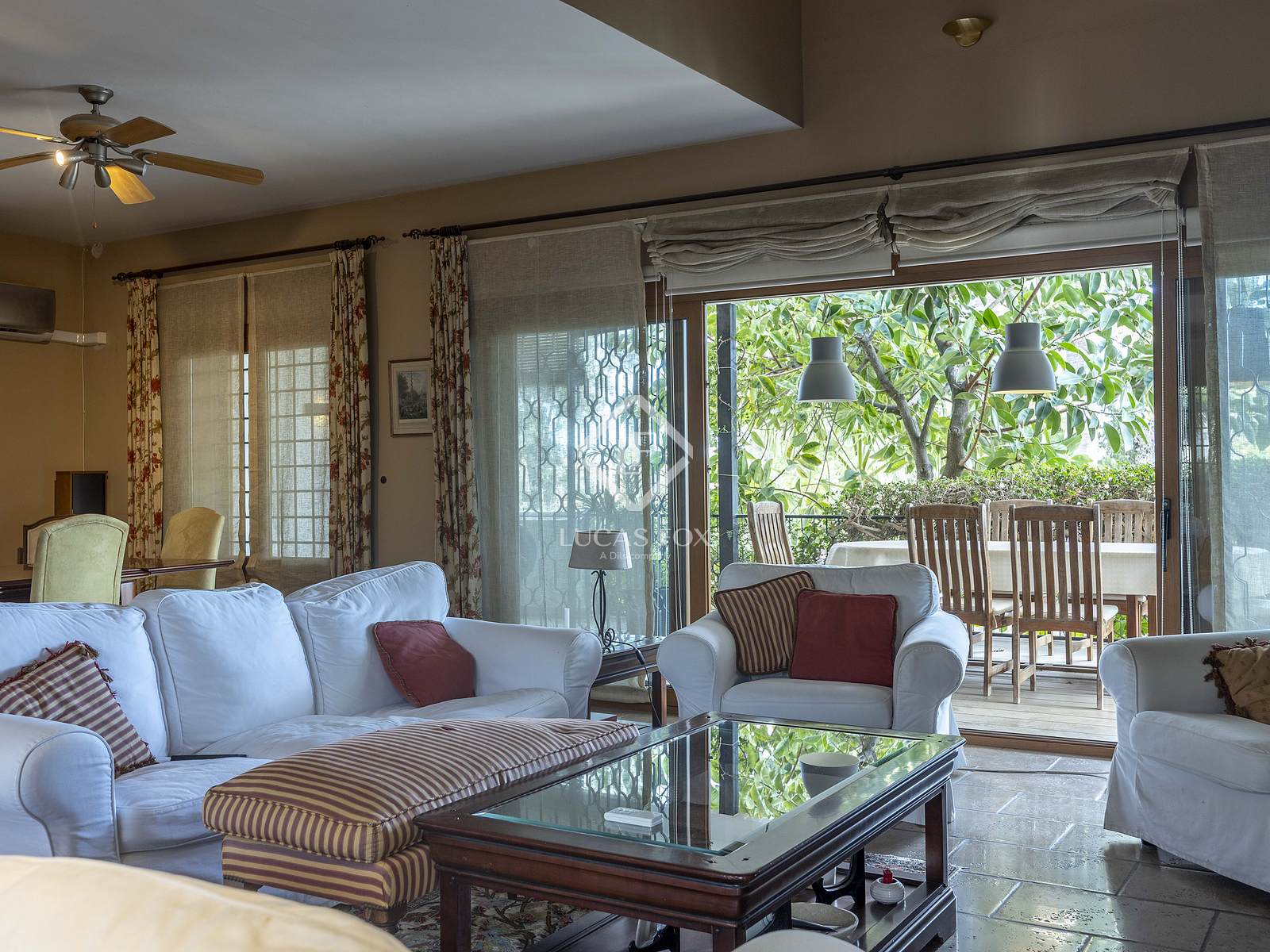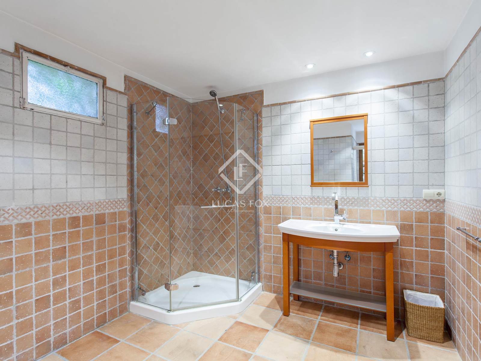 Se accede a la vivienda desde un amplio y majestuoso recibidor. Desde aquí, encontramos un aseo de cortesía, un espacio para oficina y el amplio salón con chimenea y una gran terraza. Las ventanas correderas dan a la terraza y al gran jardín con piscina. En la planta baja también encontramos una cocina totalmente equipada, un trastero y un aseo.