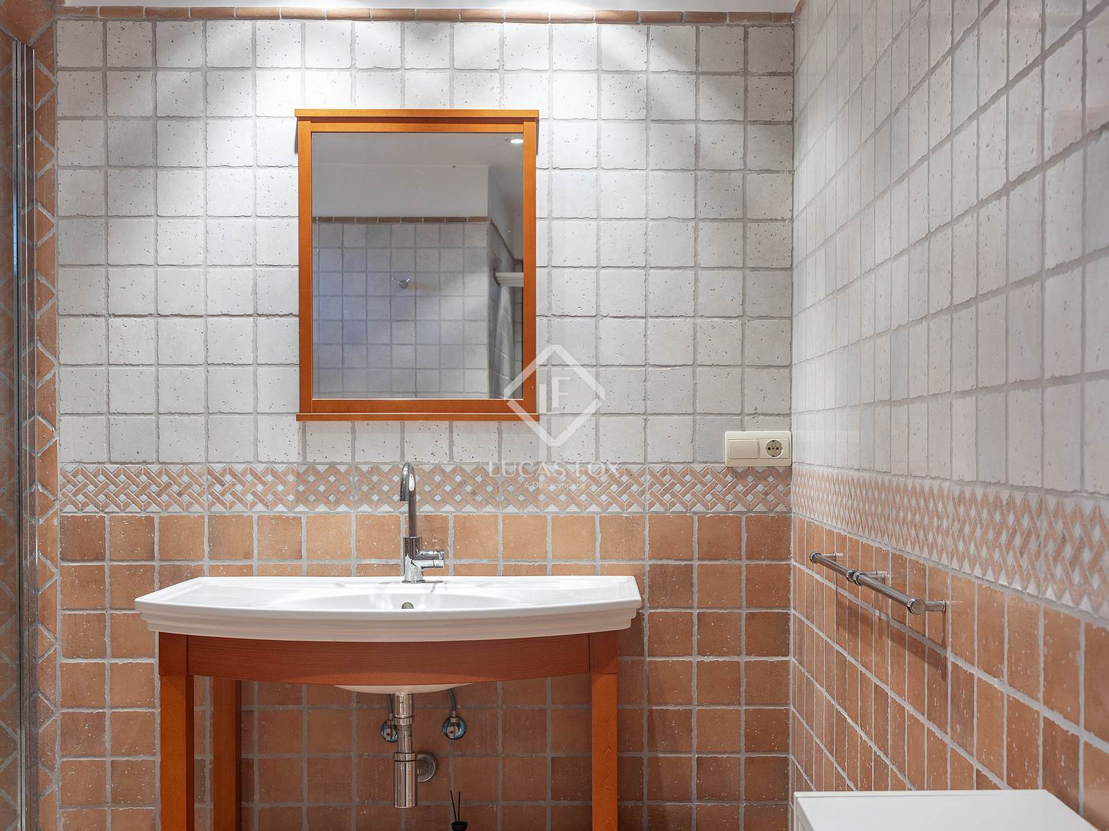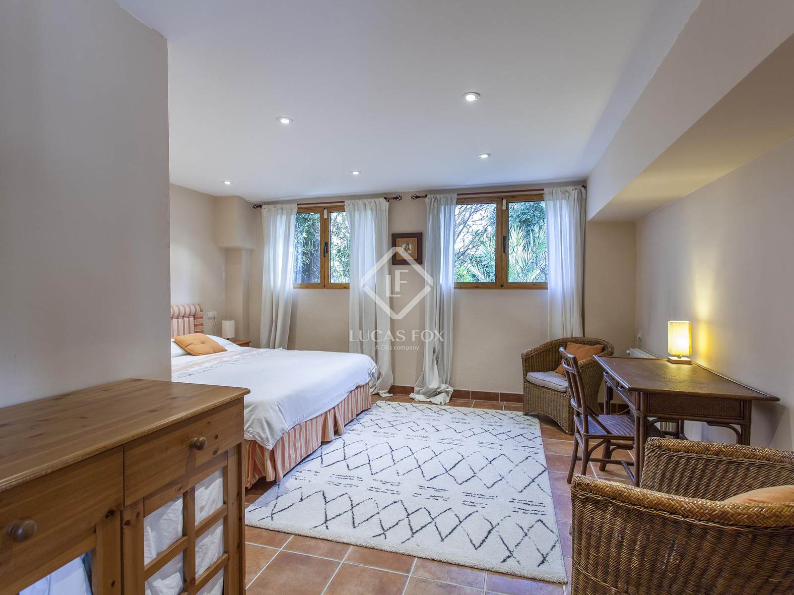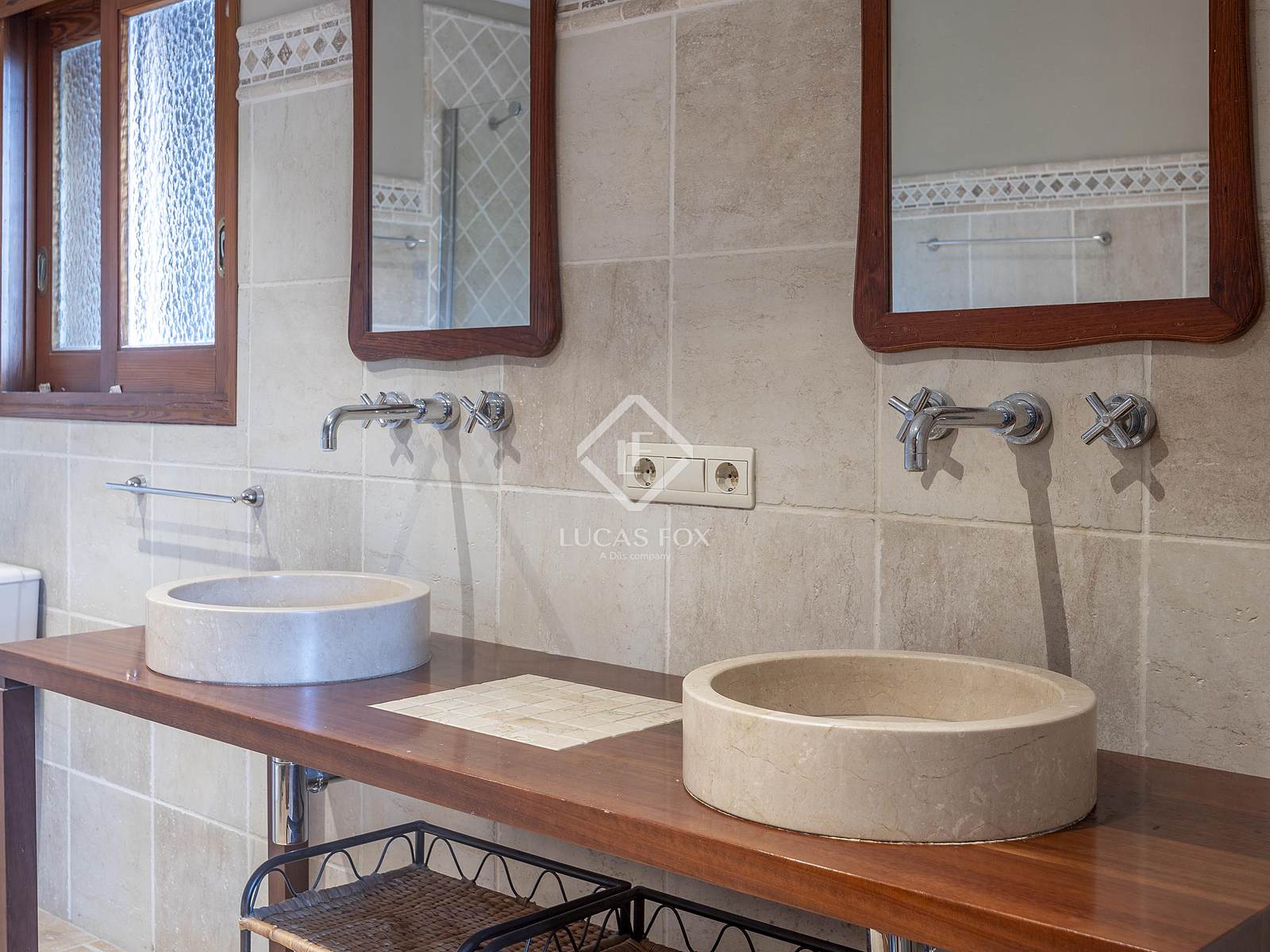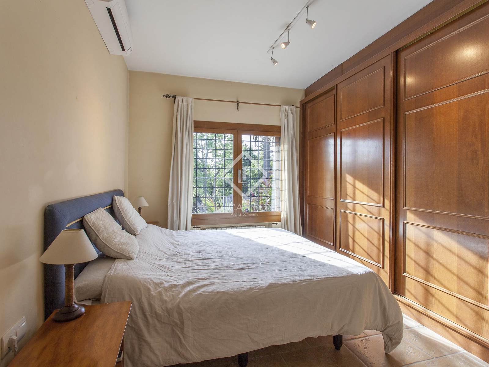 En la planta inferior encontramos 3 dormitorios más (uno con baño privado) y un baño separado con ducha a ras de suelo e inodoro. La villa viene equipada con un nuevo sistema de calefacción Vaillant con aceite natural. Desde aquí se puede acceder al gran jardín con piscina iluminada y cocina exterior.