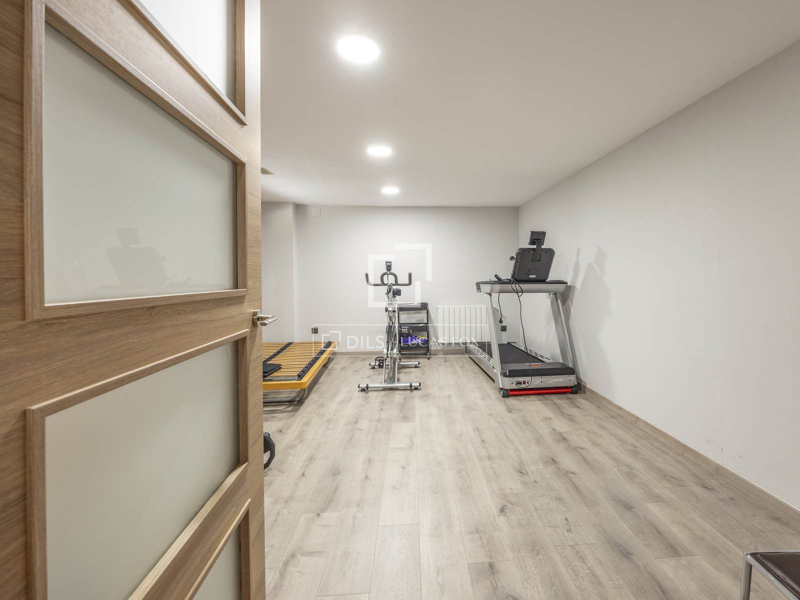 En el interior, la vivienda ofrece estancias pensadas para un estilo de vida exclusivo: gimnasio privado, oficina independiente ideal para teletrabajo, amplias zonas de almacenamiento con trastero, además de garaje y zona de parking con capacidad para varios vehículos.
