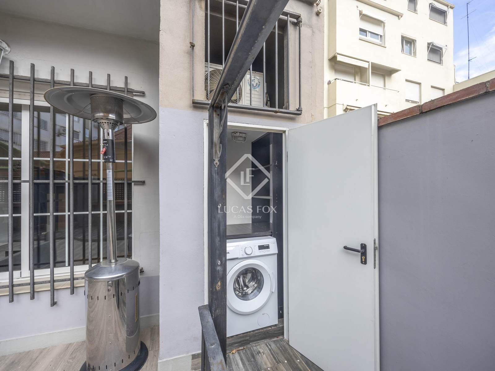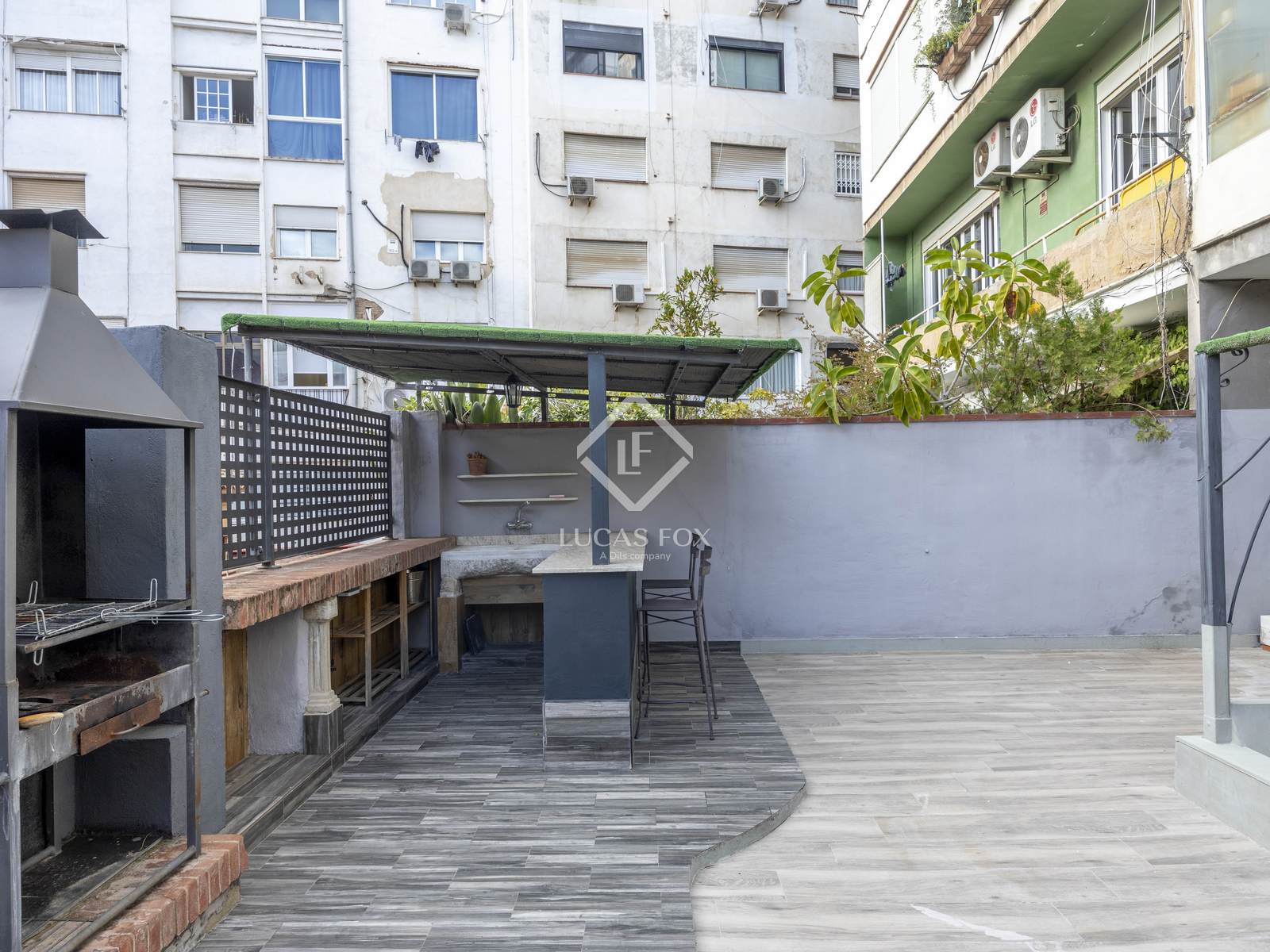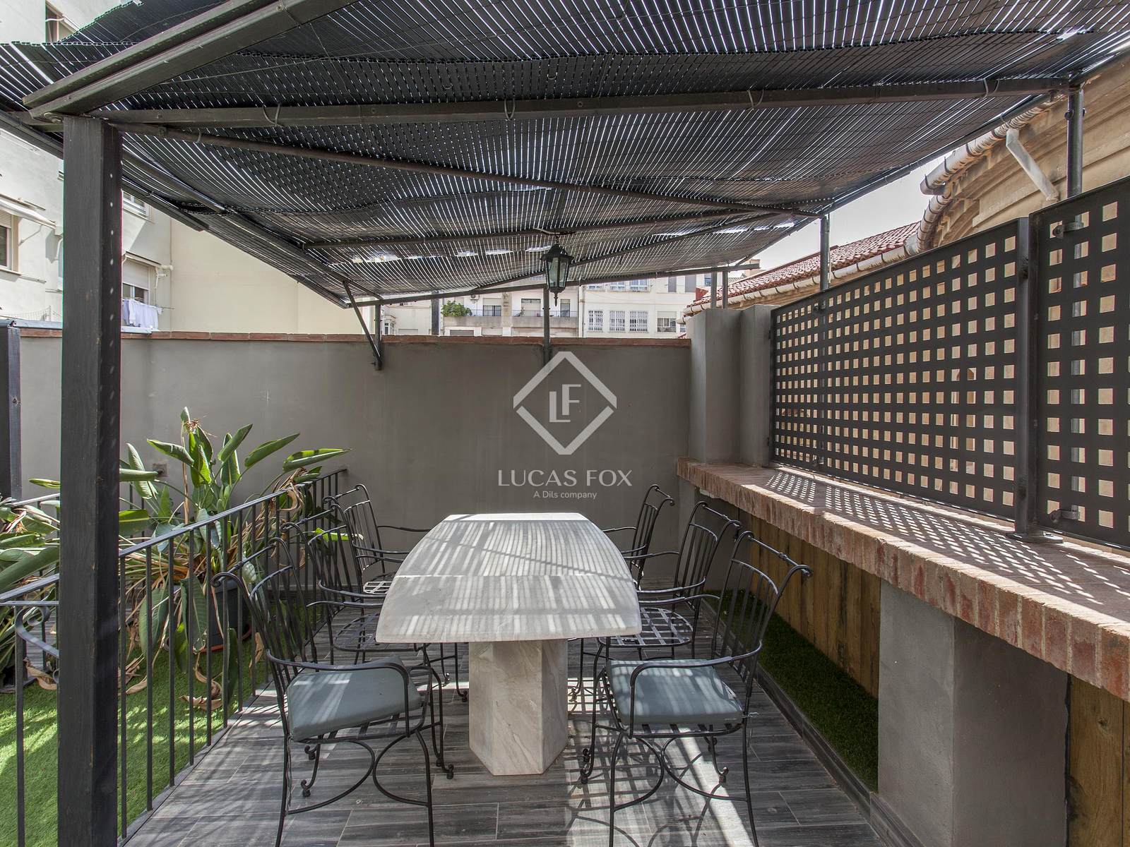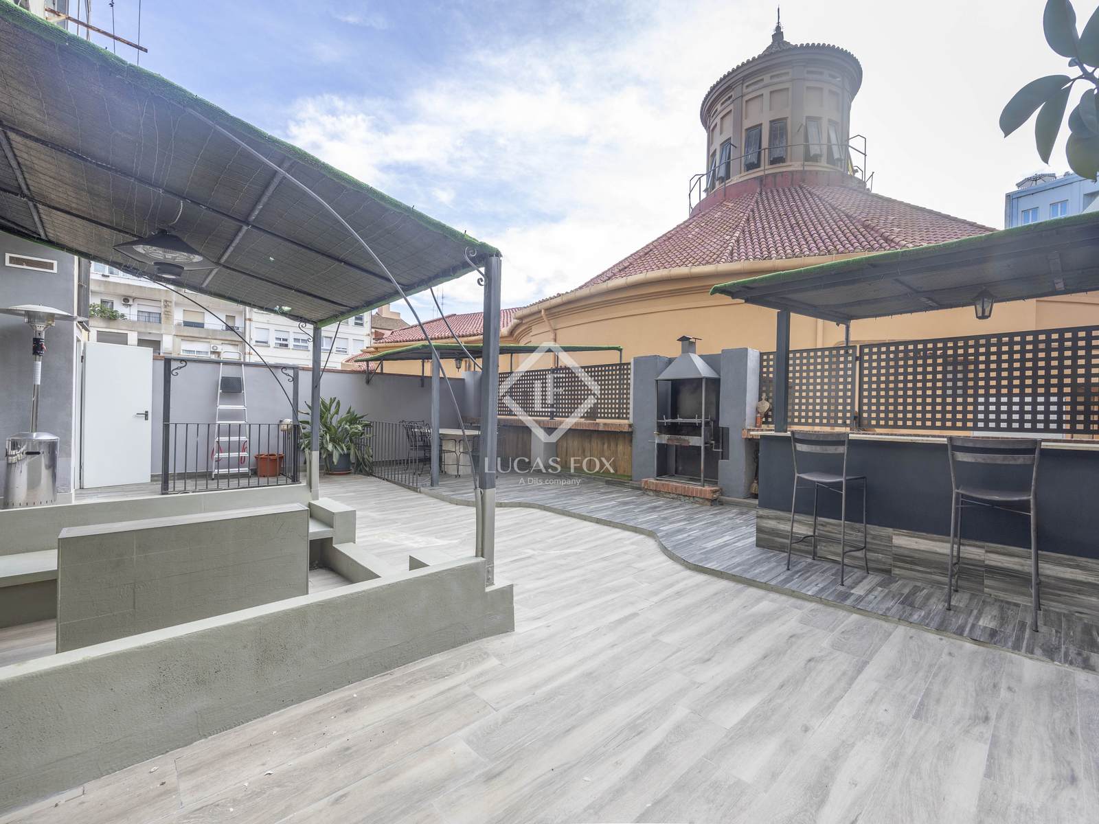 La vivienda destaca por su increíble terraza de 69 m², perfecta para disfrutar al aire libre en el centro de Valencia. Actualmente, dispone de una zona de descanso con amplios sofás, barra de bar con barbacoa, cenador para seis comensales y área de lavadero, con vistas despejadas.