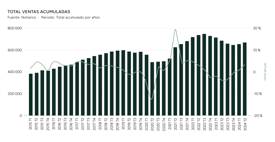 En el primer semestre de 2024 se registraron 350.818 ventas de propiedades residenciales, el segundo nivel más alto en la última década. Se espera que la caída de los tipos de interés impulse aún más las ventas en la segunda mitad del año.
