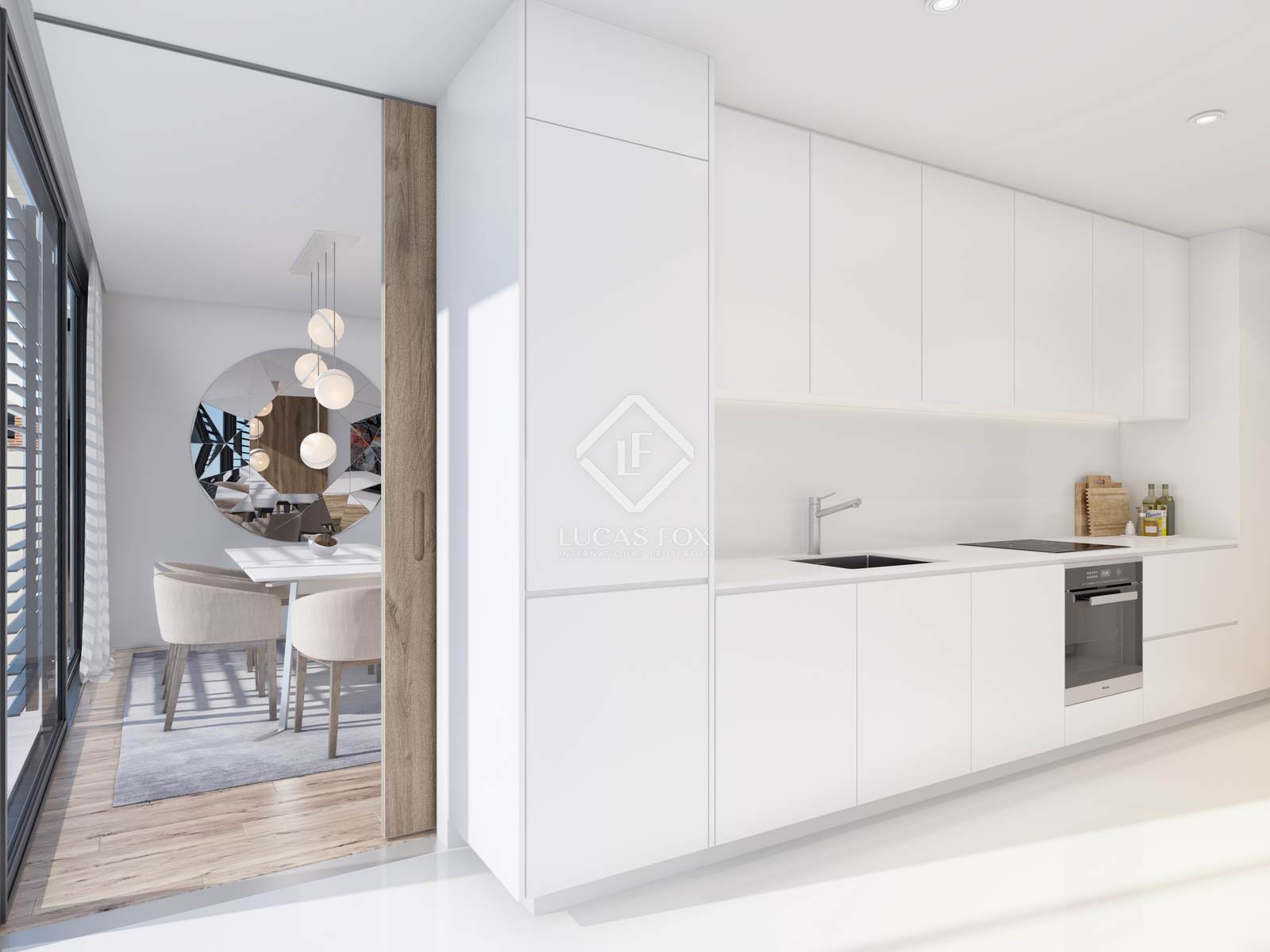 En el interior del edificio, los vestíbulos, habitaciones, suites y habitaciones tienen características comunes. Además del pavimento de madera multicapa tipo "Roble Europeo" y el falso techo continuo de cartón yeso liso, pintado en blanco, las viviendas cuentan con armarios interiores esmaltados en blanco con puertas y estantes en MDF, y paredes pintadas con pintura plástica blanca. En cuanto a las cocinas, las podemos encontrar equipadas con horno, vitrocerámica, microondas, frigorífico y lavavajillas, y muebles con acabado termolaminado (HPL) brillo en color blanco, además del suelo en sistema autoalisante, blanco y acabado brillo. Con iluminación integrada en falso techo, las cocinas cuentan además con fregaderos de acero inoxidable y monomando de sobremesa de latón cromado de la línea Flow, de la marca WE de Padimat o equivalente.